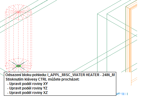 V modelovém pohledu má úchyt umístění tři možné režimy úprav: Upravit podél roviny XY, Upravit podél roviny XZ a Upravit podél roviny ZX. Stisknutím klávesy Ctrl procházejte režimy, dokud nenastavíte požadovaný režim. Výchozí režim úprav je podél roviny XY. V půdorysném pohledu je uzel Umístění omezen na pohyb v jedné rovině.