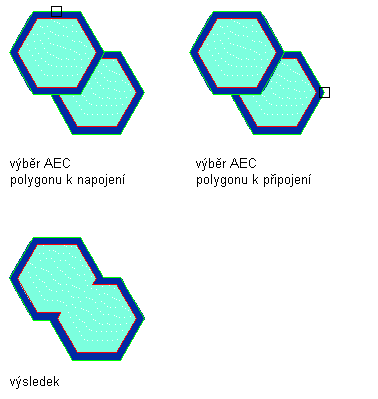 Poznámka: Při sloučení jednoho polygonu AEC s druhým budou vlastnosti výsledného polygonu AEC shodné s vlastnostmi prvního vybraného polygonu AEC.