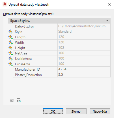 Použijte tento postup k úpravě dat sady ručních vlastností podle stylu, připojené k objektům, na které jsou ve výkresu externí odkazy (xref).