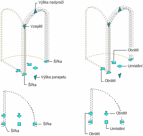 Pro úpravy dveří lze použít tyto uzly: