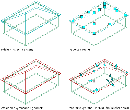 Tento postup použijte, chcete-li převést plochy existujícího objektu střechy na jednotlivé střešní desky, které mají vlastnosti nástroje střešní desky, který vyberete. Pak můžete upravit střešní desky a jejich hrany samostatně.
