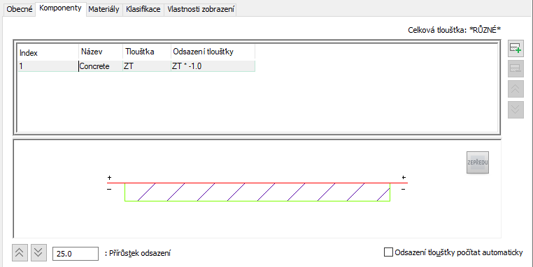 - Přidání nebo odebrání komponent desky nebo střešní desky a úprava jejich vlastností.