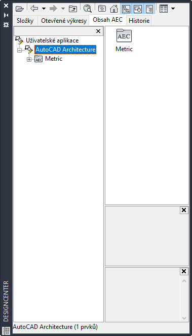 Obsah AEC (Architectural, engineering and construction) se skládá ze souborů s výkresy, architektonických symbolů, stylů objektů a rutin poznámek.