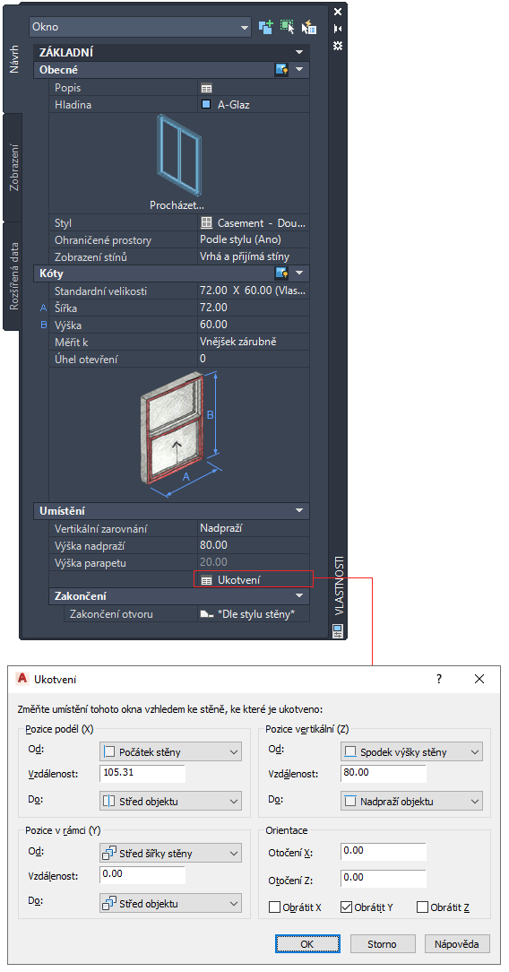 Otevření tabulky Ukotvení