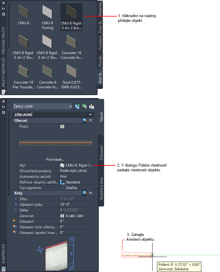 Tento postup slouží k vytvoření objektu pomocí nástroje.