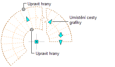 Uzly spirálového schodiště Umístění cesty grafiky a Upravit hrany