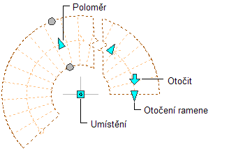 | (Otočit rameno schodiště) | Umožňuje otočení ramene točitého schodiště. |