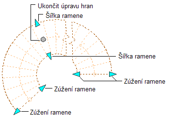 Uzly točitého schodiště Zúžení a šířka ramene a Ukončit úpravu hran