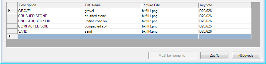 Tento postup slouží k přidání řádku k tabulce velikostí pro vybranou komponentu ve Správci komponent detailů.