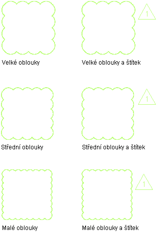 Pokud revizní obláček obsahuje štítek, představuje symbol štítku referenci bloku, kterou lze řídit nastavením měřítka poznámky. Křivka představující tvar obláčku není nastavením měřítka poznámky ovlivněna.