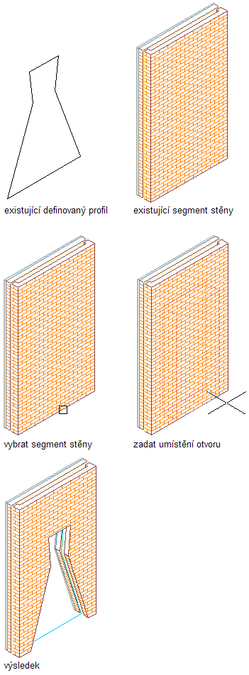 | umístit otvor do stěny | vyberte stěnu a zadejte bod vložení podél stěny |