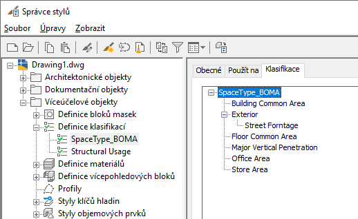 Klasifikace BOMA vložená do výkresu
