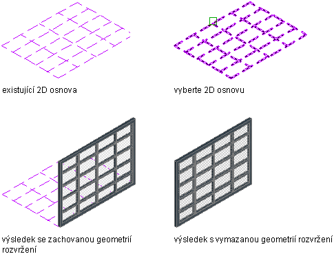 Jestliže tvoříte sestavu dveře/okno z 2D osnovy, tvoříte zároveň nový styl sestavy dveře/okno. Dělení v novém stylu sestavy dveře/okno je převzato z osnovy.