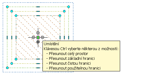 Tento postup slouží k přesunutí jednotlivých hranic prostoru do jiného umístění pomocí uzlů. Jednotlivé hranice lze přesouvat pouze tehdy, jestliže jste vybrali u položky Odsazení hranic možnost Ruční.