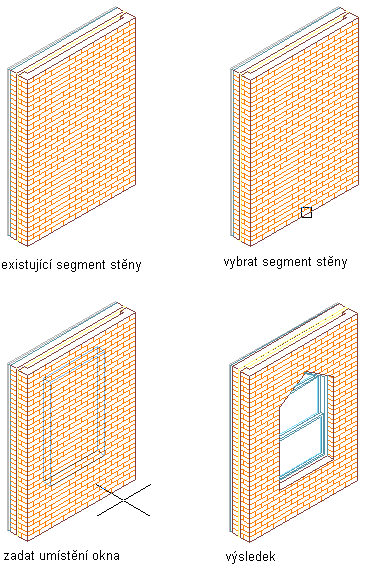 | okno do stěny | vyberte stěnu a zadejte bod vložení podél stěny. |