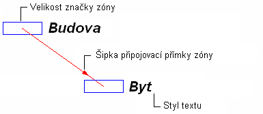 Tento postup slouží k definování stylu textu, velikosti označení zóny a šipky čáry připojení zóny.