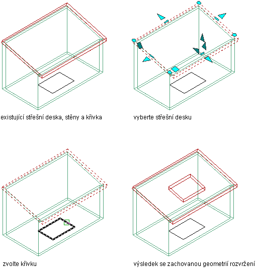 Tento postup použijte, chcete-li do desky/střešní desky přidat otvor. Otvor přidá nové vrcholy a hrany, které můžete upravit při provádění úprav ostatních vrcholů a hran desky nebo střešní desky.