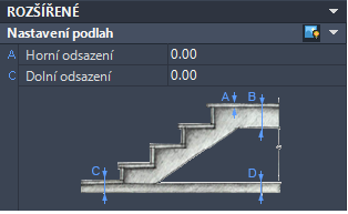 | určit tloušťku nášlapné vrstvy podlahy v horní části podlahy schodiště | zadat hodnotu pro Horní odsazení. |