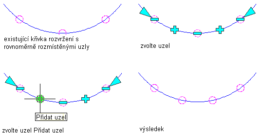 Tento postup slouží k přidání uzlů ke křivkám rozvržení.