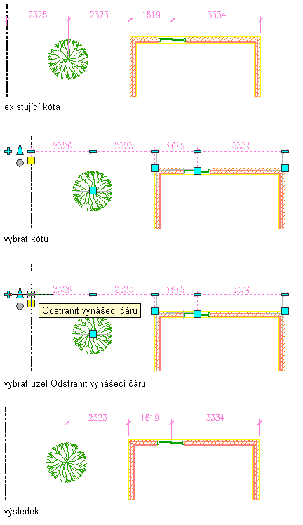 Body kóty definované bez stylu mohou být vytvořené výběrem bodů uchopení objektu nebo výběrem bodů nespojených s žádnými objekty ve výkresu. Na rozdíl od bodů kóty s definovanými styly je nelze po odstranění obnovit, ale můžete je v případě potřeby znovu vytvořit.
