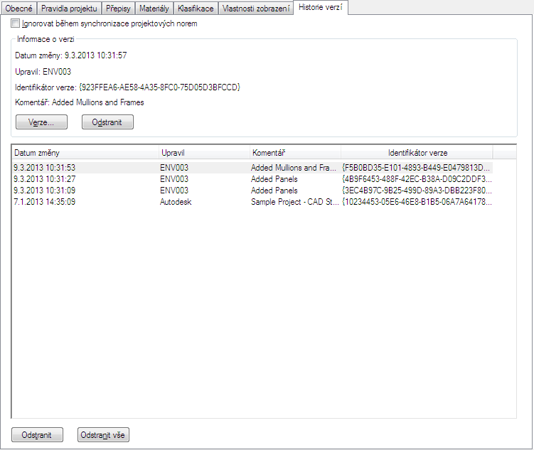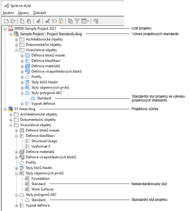 Ve výkresu projektových norem můžete změnit styl standardu nebo nastavení zobrazení. Pokud je změna provedena, je nutno přiřadit k ní verzi a poté synchronizovat projekt s touto změnou.