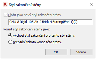 Zobrazí se dialog Styl zakončení stěny, kde lze provést následující akce: