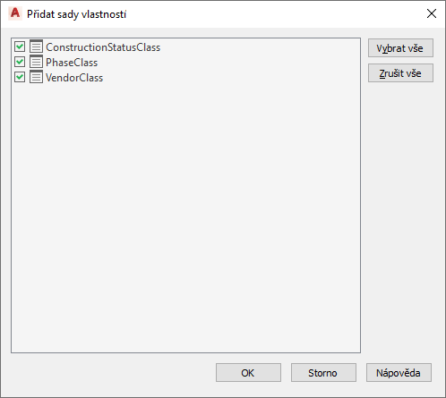 Použijte tento postup k přidání definic sady vlastností do jednotlivých klasifikací v definici klasifikace. Když přidáte definice sady vlastností můžete sledovat další informace.