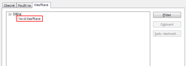 Víceúčelové objekty, klikněte pravým tlačítkem myši na položku Definice klasifikací a vyberte položku Nový.