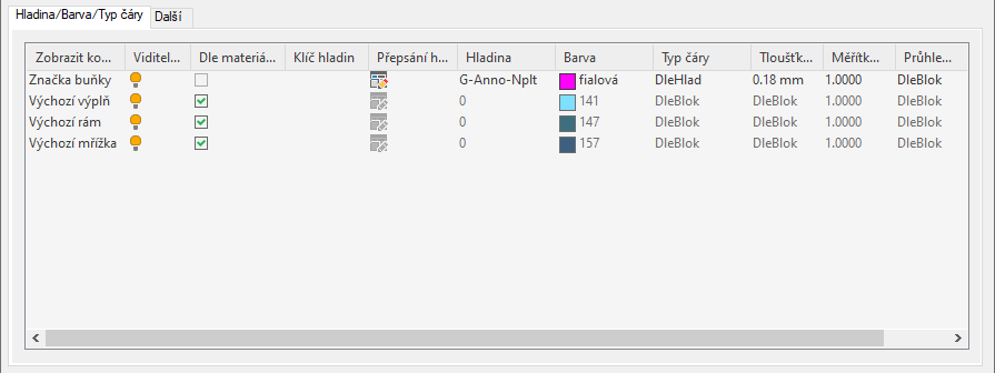 - Klikněte na kartu Hladina/Barva/Typ čáry.
