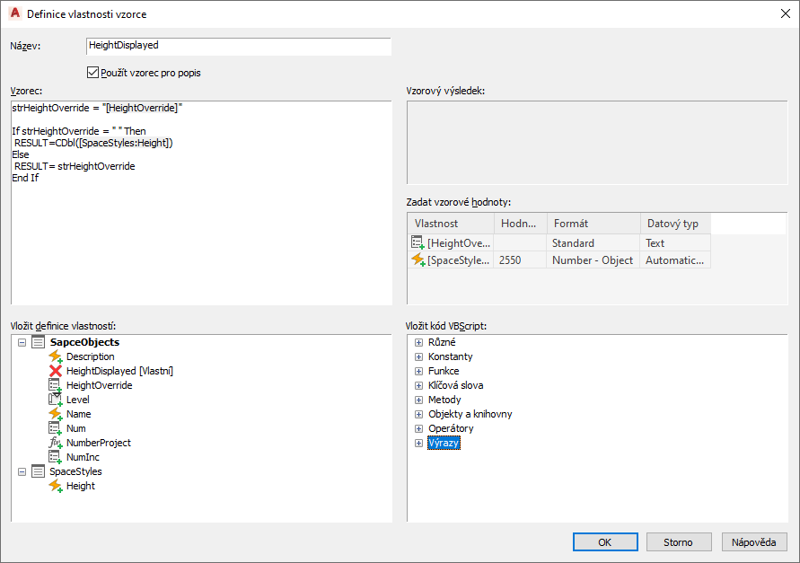 Upravena definice vlastnosti vzorce HeightDisplayed v tabulce Definice vlastnosti vzorce.