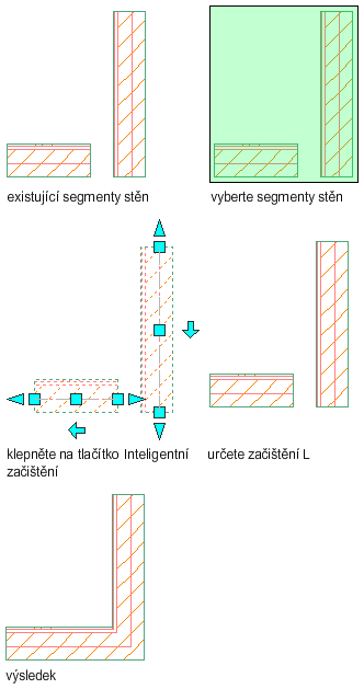 Při práci s funkcí inteligentního začištění použitou pro průniky typu L platí následující pravidla: