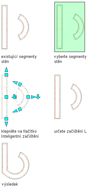 Začištění typu L funguje stejně také u segmentů obloukových stěn.