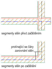 - Segmenty stěn se začistí tehdy, když se čáry zarovnání příslušných stěny čistě vzájemně protínají.