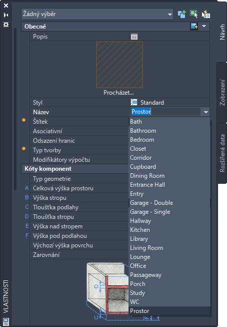 Definice seznamu je seznam názvů, které lze použít jako povolené názvy pro prostory nebo zóny. Definice seznamu lze připojit ke stylu prostoru nebo zóny, tak aby byly seznamy názvů k dispozici na paletě Vlastnosti při vytvoření nebo úpravě prostoru či zóny s tímto stylem.
