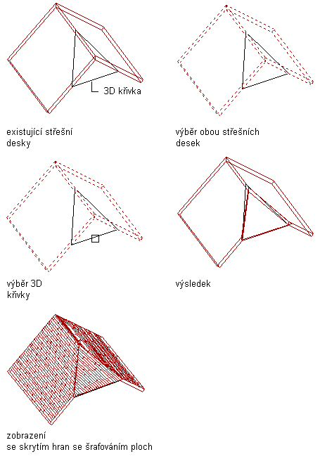 Tento postup použijte, chcete-li upravit dvě střešní desky pro přidání třetí desky, tvořící střechu s oříznutým štítem.