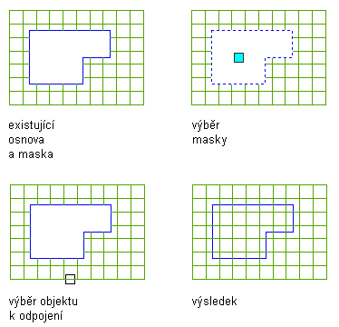 Tento postup slouží k demaskování objektu v pohledu půdorysu odpojením objektu od bloku masky.
