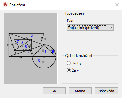 Tento postup slouží k určení typu dílčích entit, na něž je prostor rozložen, a typu entit aplikace AutoCAD, na něž je rozložený prostor převeden při rozbalení.