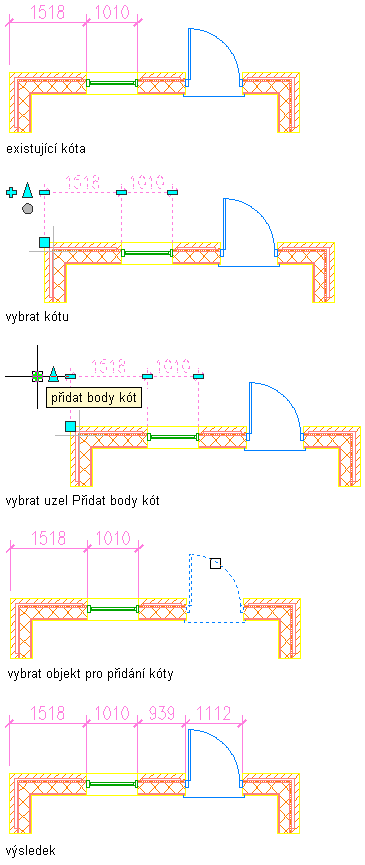 Body kóty zadané ve stylu pro vybrané objekty jsou přidány do řetězců kóty AEC.