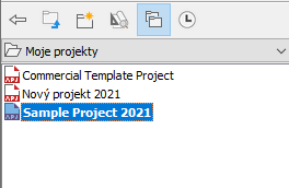 Nástroj pro výběr projektu v levé části Prohlížeče projektu zobrazuje projekty, které jste vytvořili v aplikaci Sada nástrojů AutoCAD Architecture 2027.