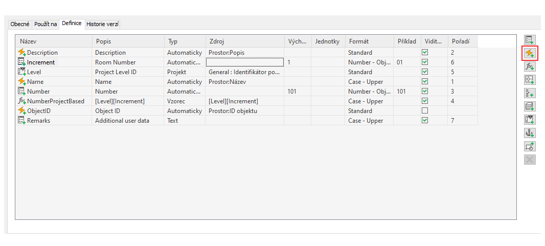 Na kartě Definice klikněte na tlačítko Přidat definici automatické vlastnosti.