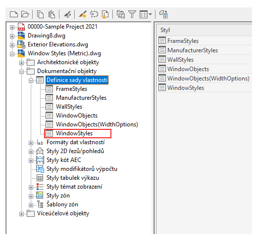 Rozbalte definici sady vlastností a vyberte styly oken.