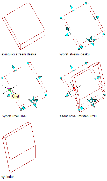 Použití uzlu Úhel k úpravě sklonu střešní desky