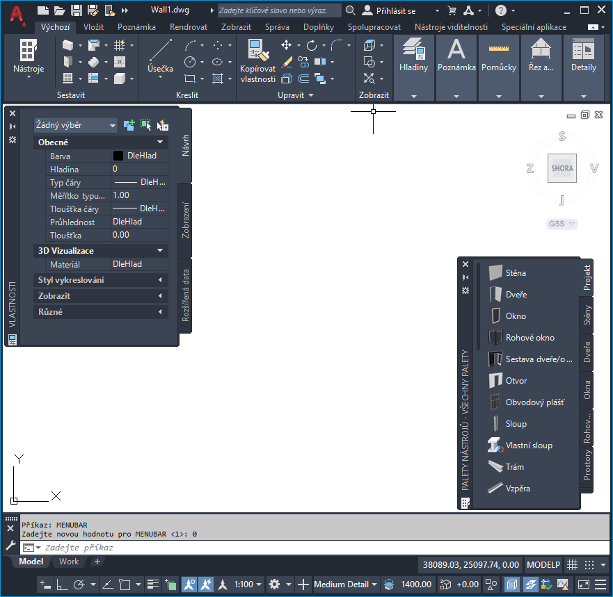 Výchozí konfigurace pracovního prostoru AutoCAD Architecture 2027 Toolset