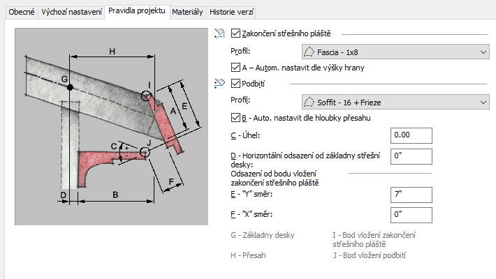 | použít podbití v jeho nakreslené velikosti | zrušte Automaticky nastavit podle hloubky přesahu. |