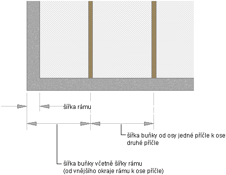 Standardně jsou měřeny buňky osnovy od počátečních a koncových bodů základny sestavy dveře/okno (pro horizontální dělení) nebo od základny k základní výšce ( pro vertikální dělení). Šířka rámu osnovy se nebere v ohled při výpočtu rozměru buňky. Například, jestliže nakreslíte sestavu dveře/okno se 14 stopami. základna a 1 stopa. rám nalevo a napravo a určíte pevný počet vertikálních buněk, buňky nebudou vypadat rozměrově stejné. První a poslední buňky vypadají menší, protože obsahují rám.