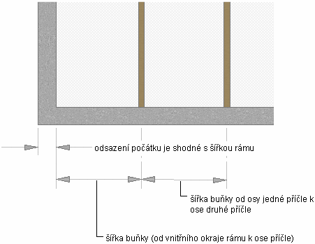 | počáteční bod základny sestavy dveře/okno a začátek první buňky v horizontální osnově | zadejte hodnotu do pole Počáteční odsazení. |