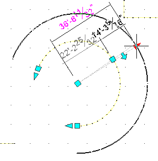 Poznámka: Když posunete uzel, zobrazí se původní hodnota poloměru vedle nového poloměru a rozdílu obou hodnot.