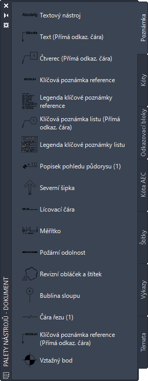 Následující styly aplikace AutoCAD rovněž umožňují použití poznámek: