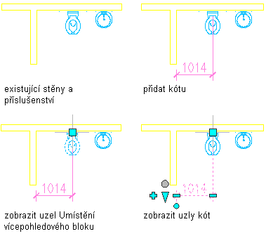 Protože je kóta generovaná body výběru v objektech asociativní, budou při přesunutí objektu odpovídajícím způsobem aktualizovány body kóty a budou tak sledovány jakákoli zadaná odsazení.