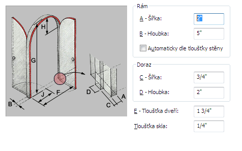 | nastavit šířku rámu na tloušťku stěny | pod položkou Rám vyberte možnost Automaticky nastavit na šířku stěny. |